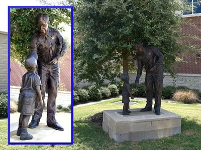 This sculpture of a policeman holding hand with a young boy is based on College Station Police Chief, Ed Feldman. He was deeply admired by our community. Read more HERE, including how he pitched against Willie Mays! You can find this heart-warming…