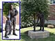 Sculptor: Jon Krawczyk, an acclaimed California-based artist, known for his biomorphic sculptures in steel, aluminum and bronze. He has other sculptures on the Aggieland Art Trail, including Xiggerotts, La Familia and Hold On.